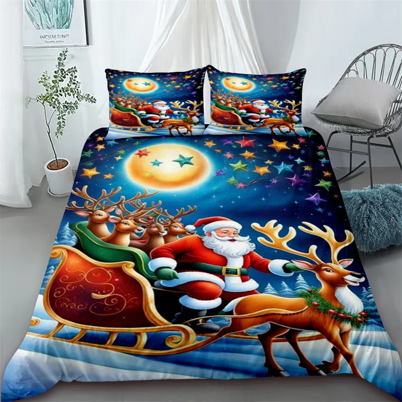 Cartoon Santa Claus Duvet Cover Elk Christmas Bedding Set with Zipper 1 Duvet Cover 2 Pillow Case Queen KIng Bedroom Decor